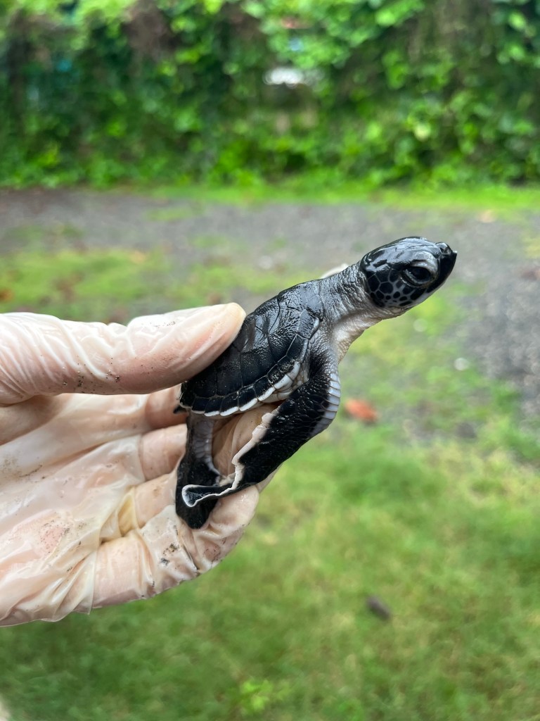 Yesterday the Green Sea Turtle eggs that were brought to the Reserve Playa Tortuga hatchery from Hamosa beach hatched. The Green Sea Turtles are a bit bigger than the Olive Ridley turtles that we have here. Yesterday I watched them being released into the sea. It was quite heart- wrenching watching them get caught up by the sea and being tossed about; their little heads popping up out of the waves but they are free to start their new lives in the ocean. Stay safe little ones 💖🐢🙏🏻